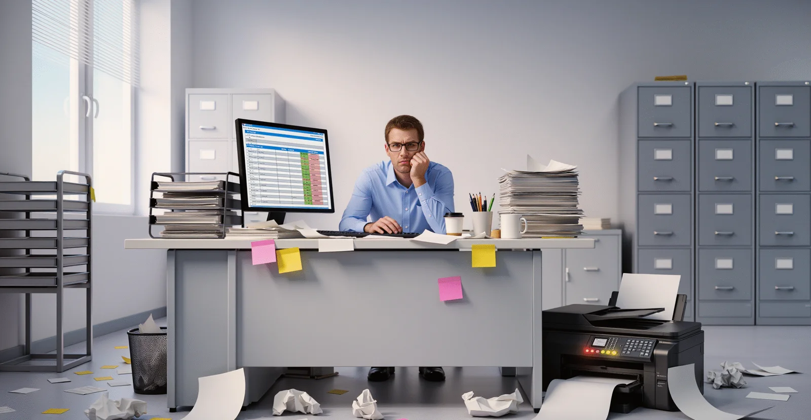 Descontrole administrativo e financeiro. Cadastros, contratos, notas e atendimentos confusos que geram retrabalho e custos fixos elevados.